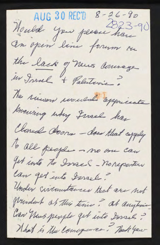 Suggests an open forum about the lack of news coverage on Palestine and Israel; details Israel's closed door to reporters.