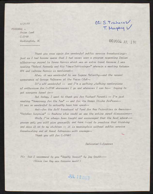 Praises C-SPAN's and the guests invited by C-SPAN.
