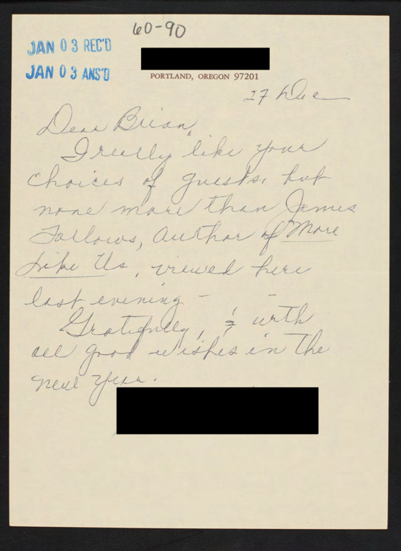 - Letter to C-SPAN, 1989-12-27; 97201