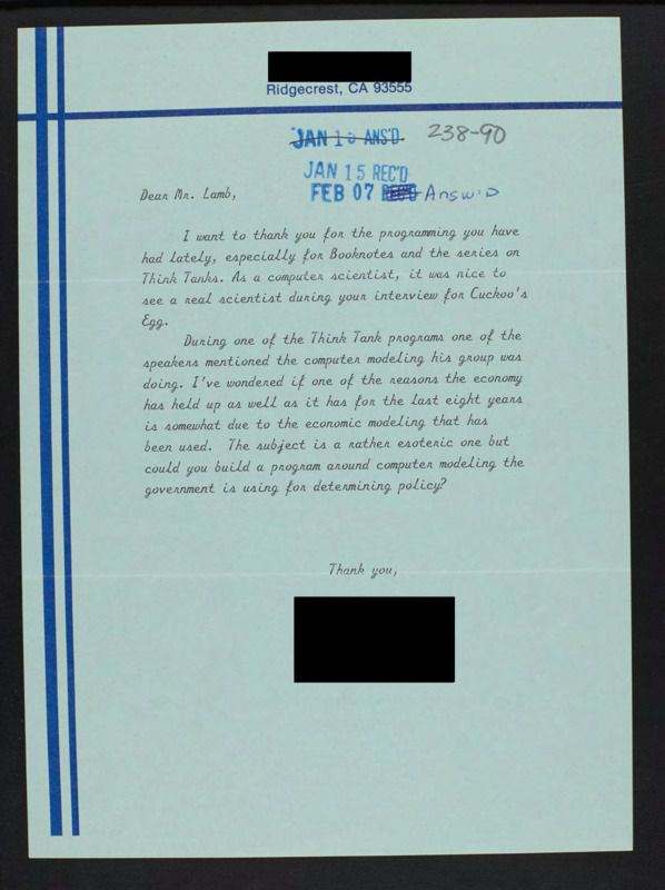 Letter to C-SPAN, n.d.; 93555