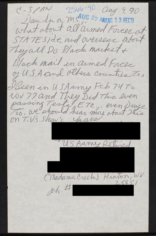 Letter to C-SPAN, 1990-08-09; 25951