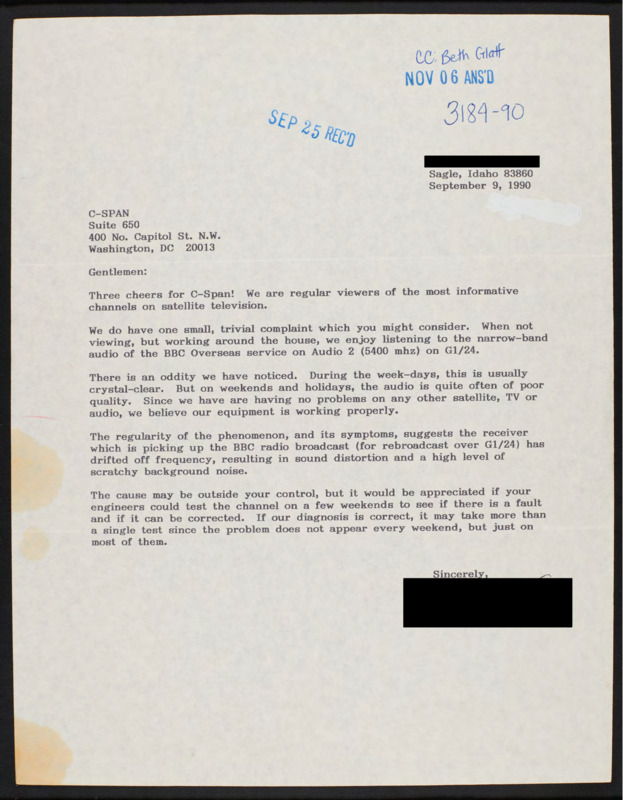 Discusses issues that are occurring with C-SPAN's audio channels during the weekend and holidays.