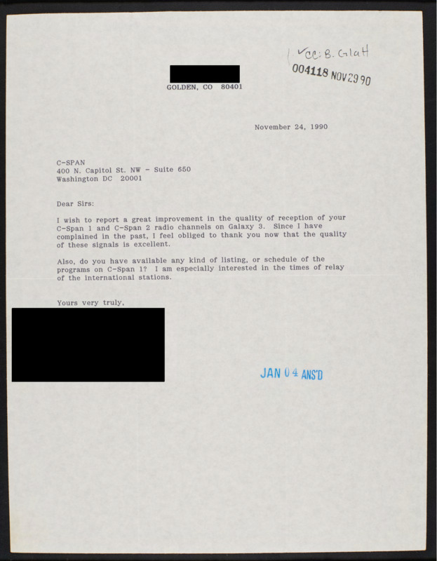 Letter to C-SPAN, 1990-11-24; 80401