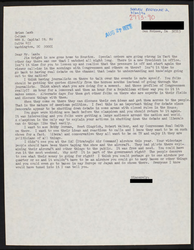 Complains about the reduce time for call-ins and C-SPAN's reliance on journalists for information instead of seeking primary sources.