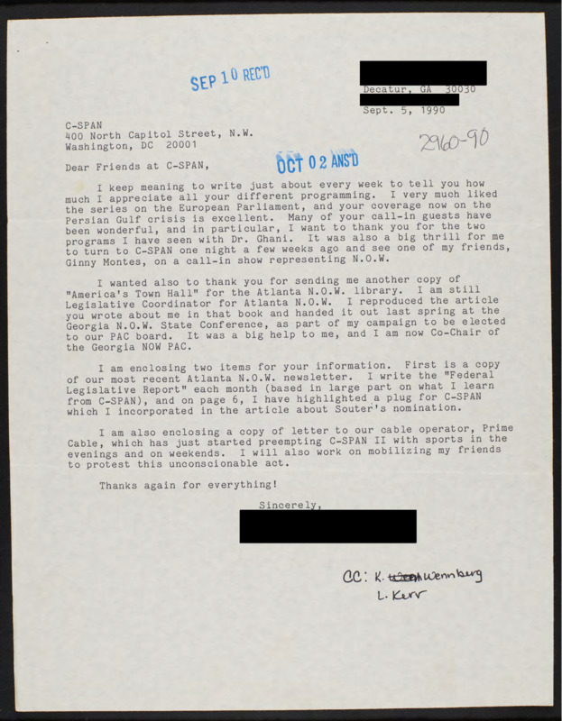 Praises C-SPAN for european coverage and mentions protesting cable company for airing sports over C-SPAN2.
