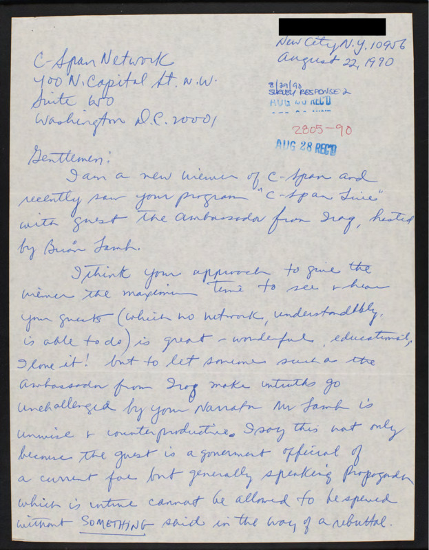 Letter to C-SPAN, 1990-08-22; 10956