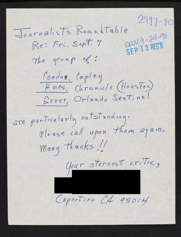 Praises the journalists on C-SPAN's Journalist Roundtable.