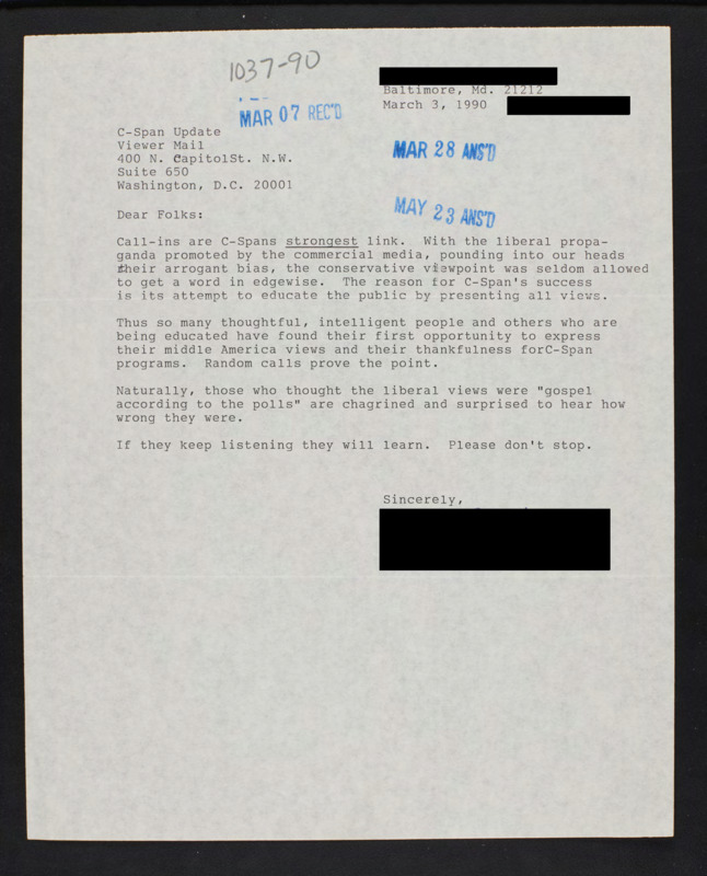 Praises C-SPAN for allowing conservative point of views a platform. Criticizes liberals and "liberal propaganda."