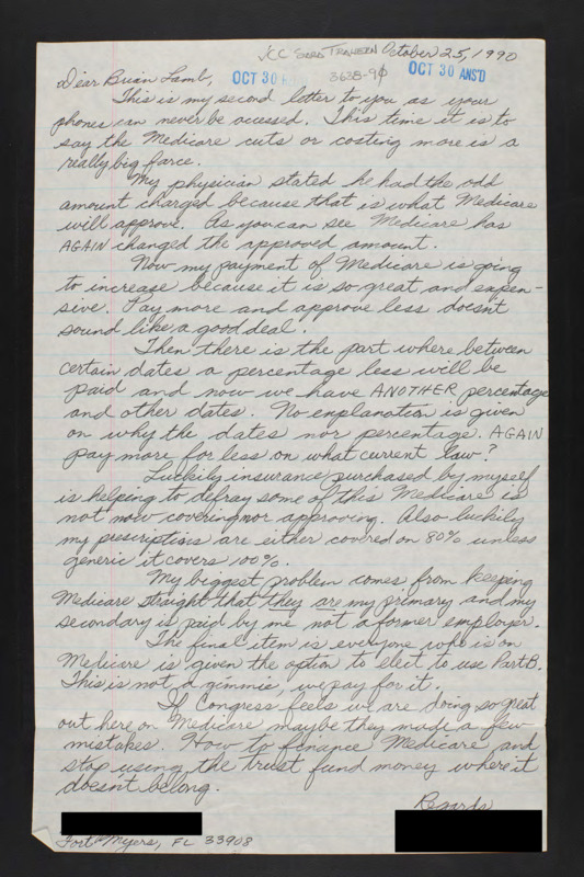 Letter to C-SPAN, 1990-10-25; 33908