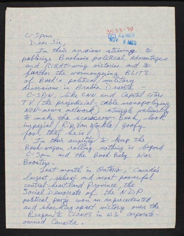 Letter to C-SPAN, 1990-10-12