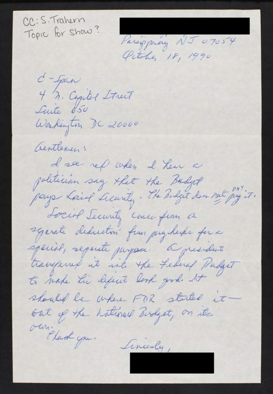 Letter to C-SPAN, 1990-10-18; 07054