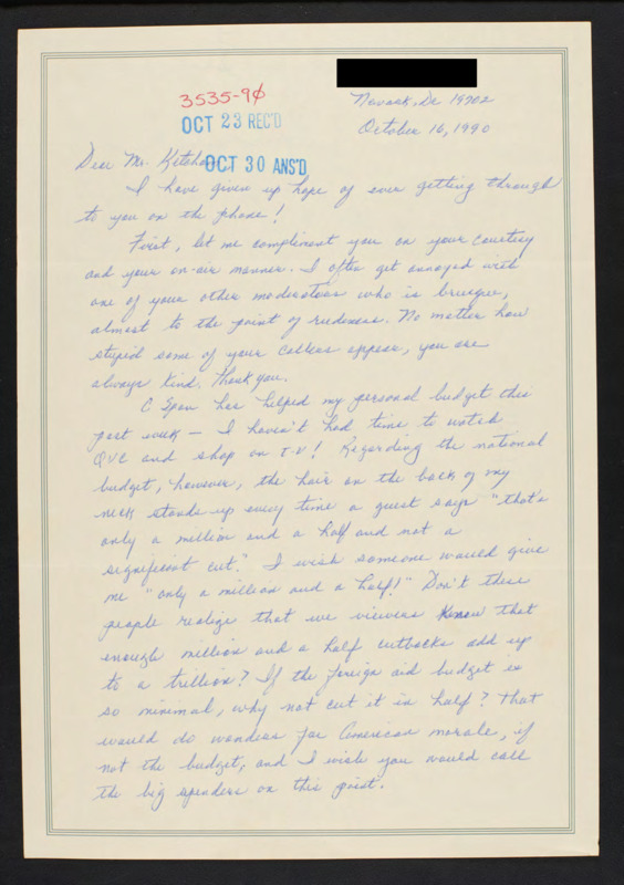 Letter to C-SPAN, 1990-10-16; 19702