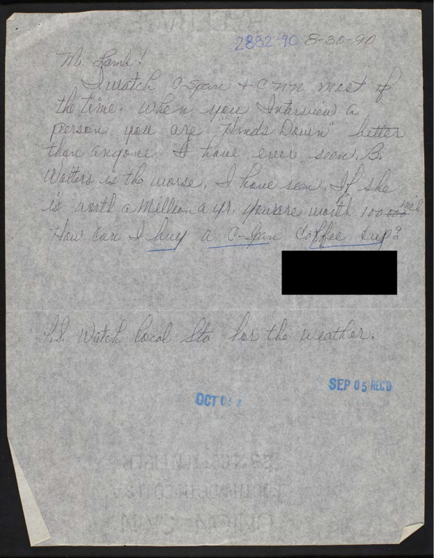 Letter to C-SPAN, 1990-08-30; 76031