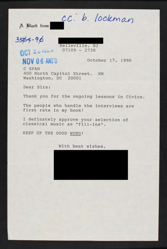 Letter to C-SPAN, 1990-10-17; 07109
