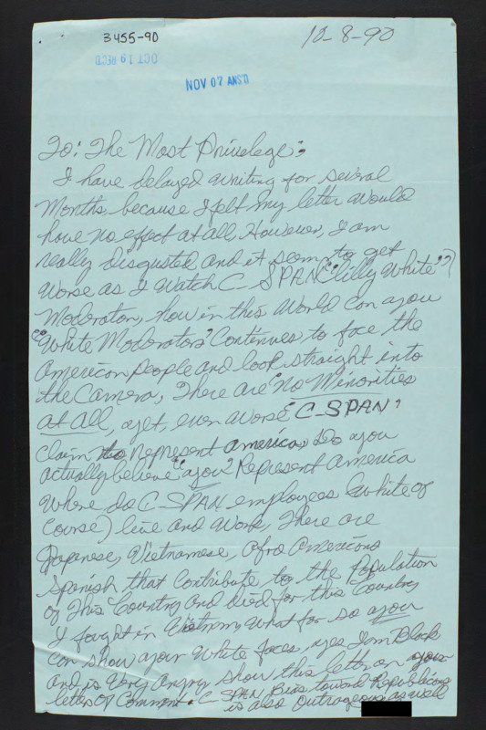 Criticizes C-SPAN for claiming to represent America but only having White moderators.