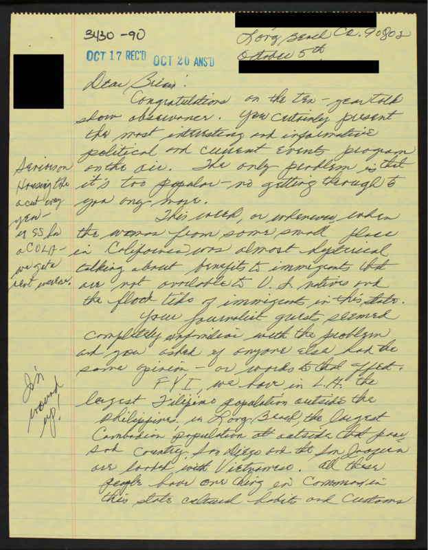 Criticizes C-SPAN journalists on topics about immigration in California, the United States budget, and republicans.