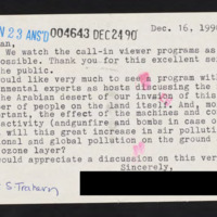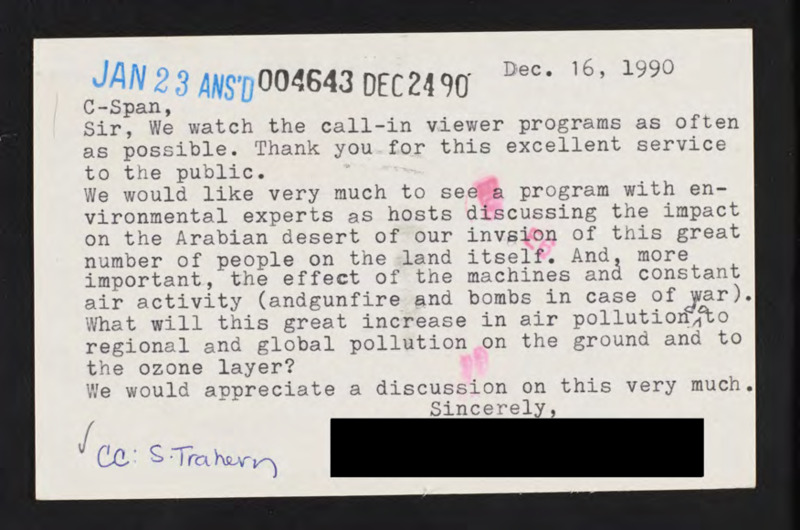 Requests a C-SPAN program assessing the environmental impact of the Arabian desert.