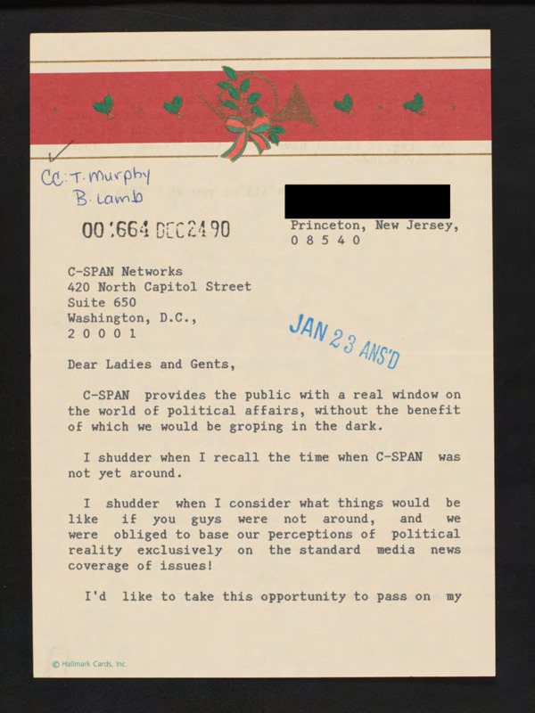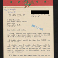 Praises C-SPAN for allowing the public a outlet to view government affairs.