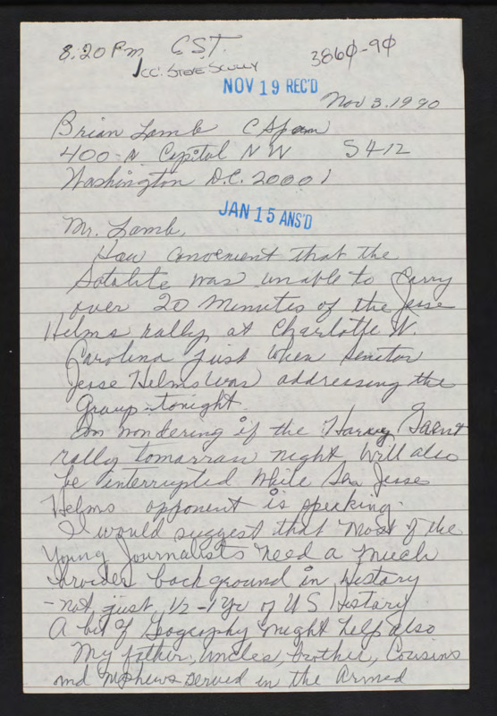 Criticizes young journalists on C-SPAN and discusses servicemen in relation to freedom.