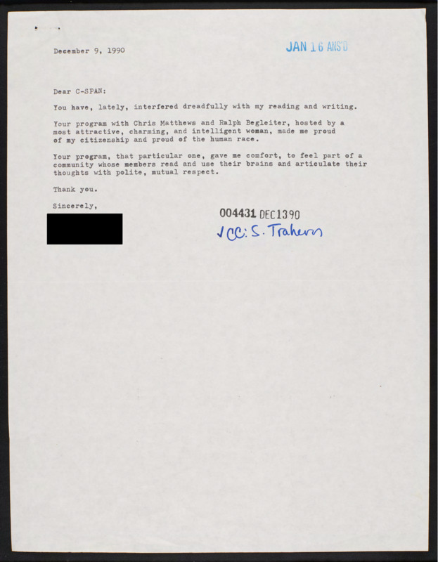 Letter to C-SPAN, 1990-12-09; 47402