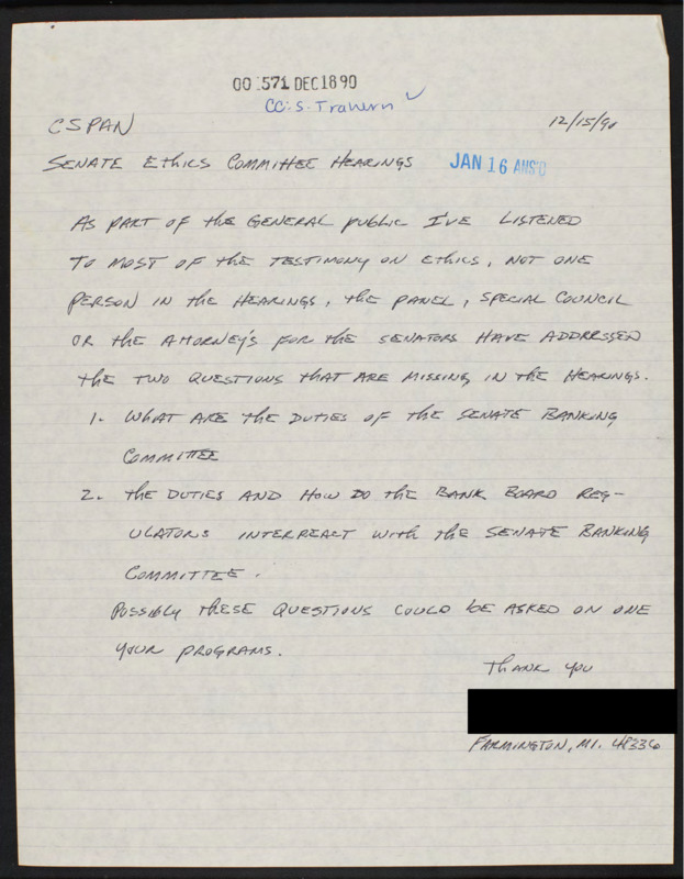 Criticizes a senate committee hearing because senators are not addressing all of the questions.