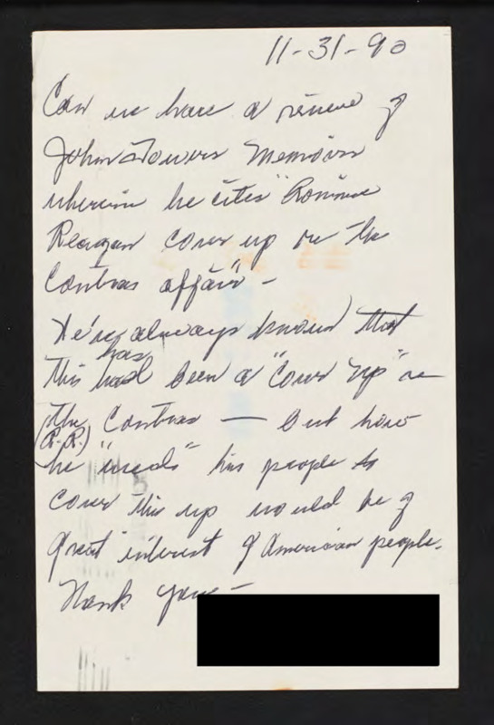 Recommends C-SPAN review a book that discusses Ronald Reagan and the contra affairs.