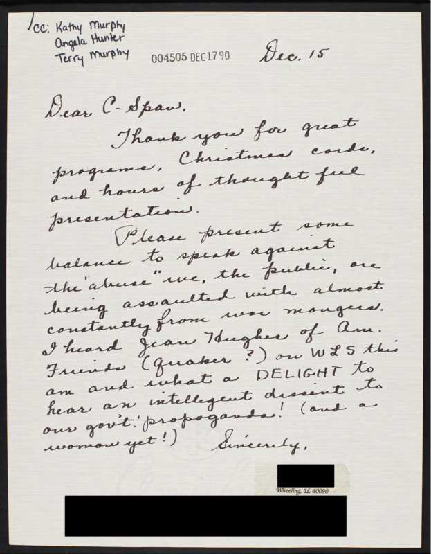 Letter to C-SPAN, 1990-12-15; 60090