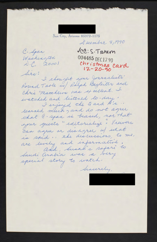 Letter to C-SPAN, 1990-12-08; 85372