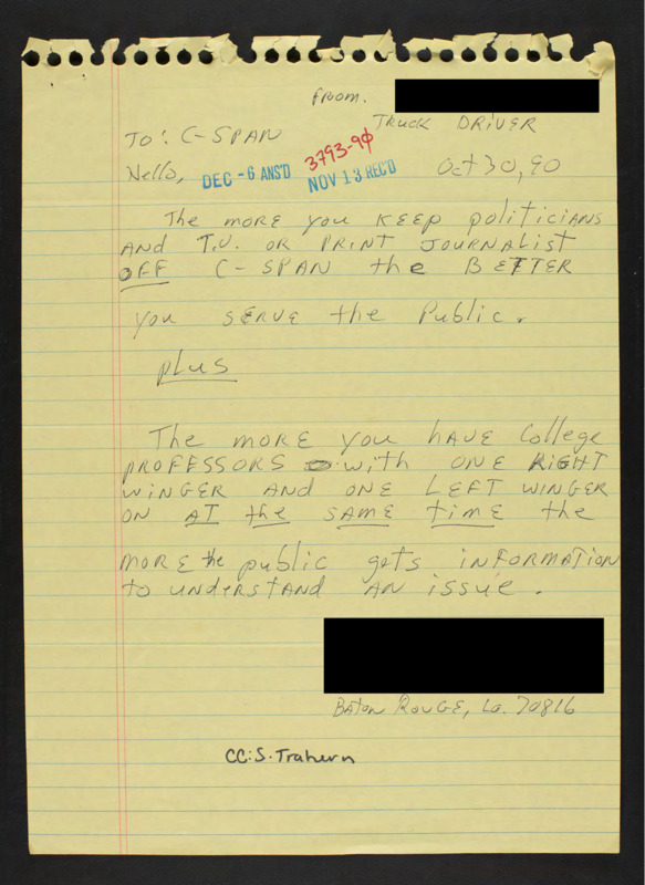 Explains that C-SPAN is better without politicians and journalists. Instead, invite more college professors.