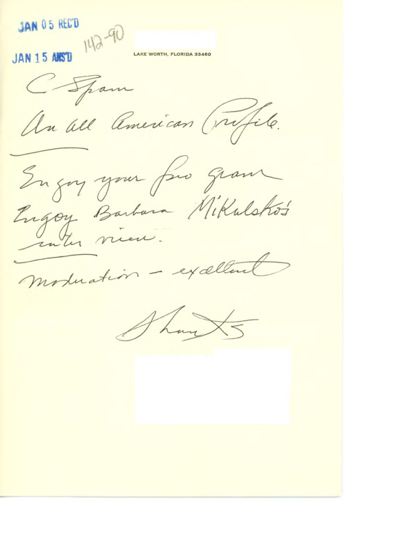 Letter to C-SPAN, n.d.; 33460