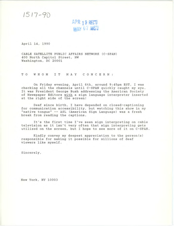 Thanks C-SPAN for offering a recent program with a sign language (ASL) interpreter.