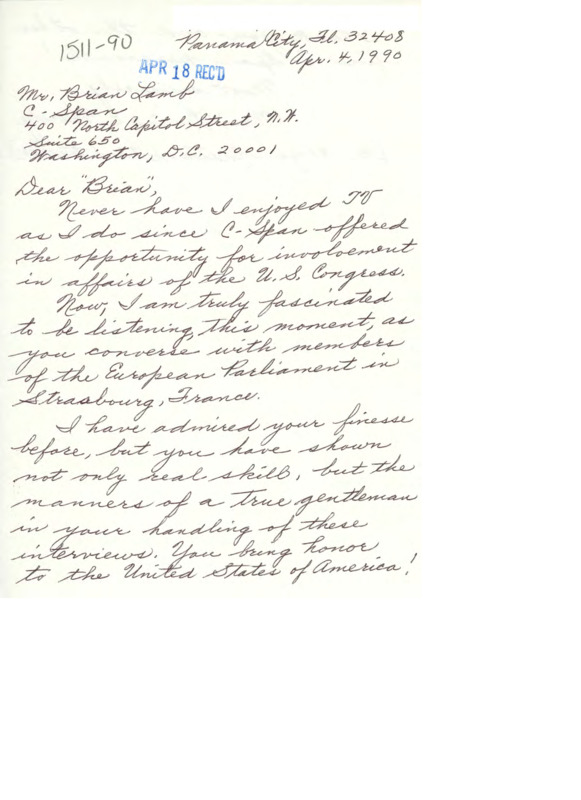 Letter to C-SPAN, 1990-04-04; 32408
