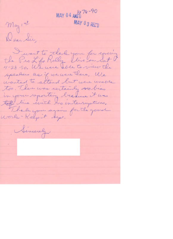 Letter to C-SPAN, 1990-05-01