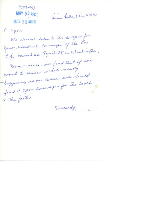 Thanks C-SPAN for coverage on the Pro-Life March.