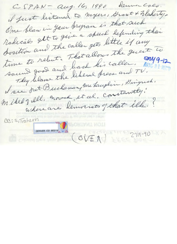 Expresses distaste that perceived "radicals" are allowed to give speeches on C-SPAN.