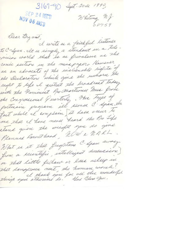 Criticizes a program featuring pro-choice advocates and argues that the pro-life advocates are not given equal coverage.