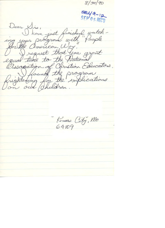 Letter to C-SPAN, 1990-08-30; 64109
