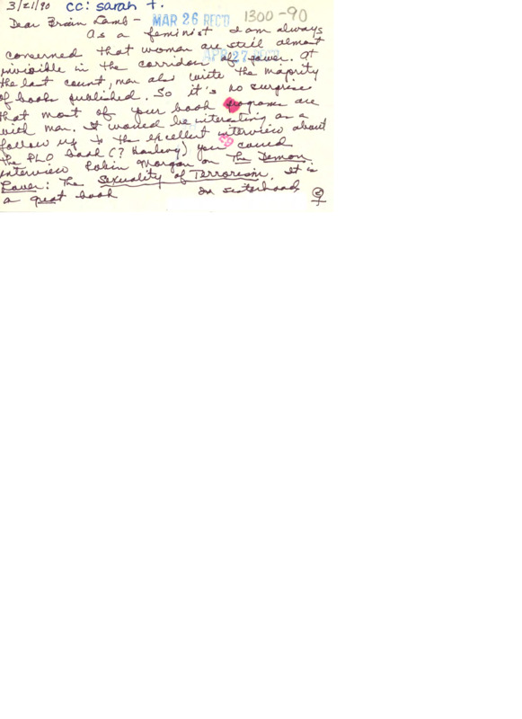Expresses concern that more female authors are not interviewed and suggests a few.
