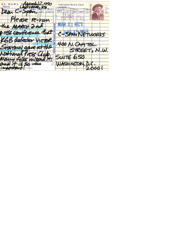 Letter to C-SPAN, 1990-03-12