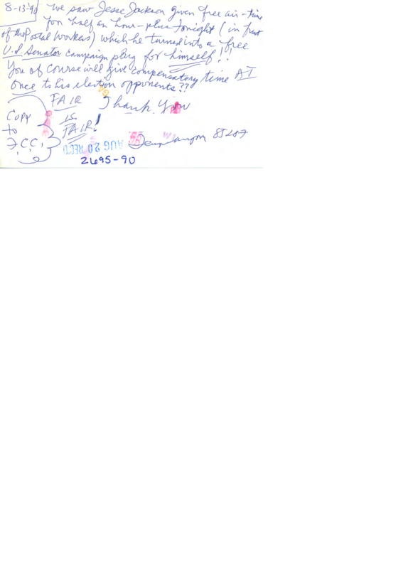 Letter to C-SPAN, 1990-08-13