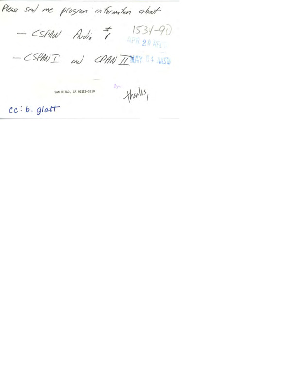 Letter to C-SPAN, n.d.; 92122