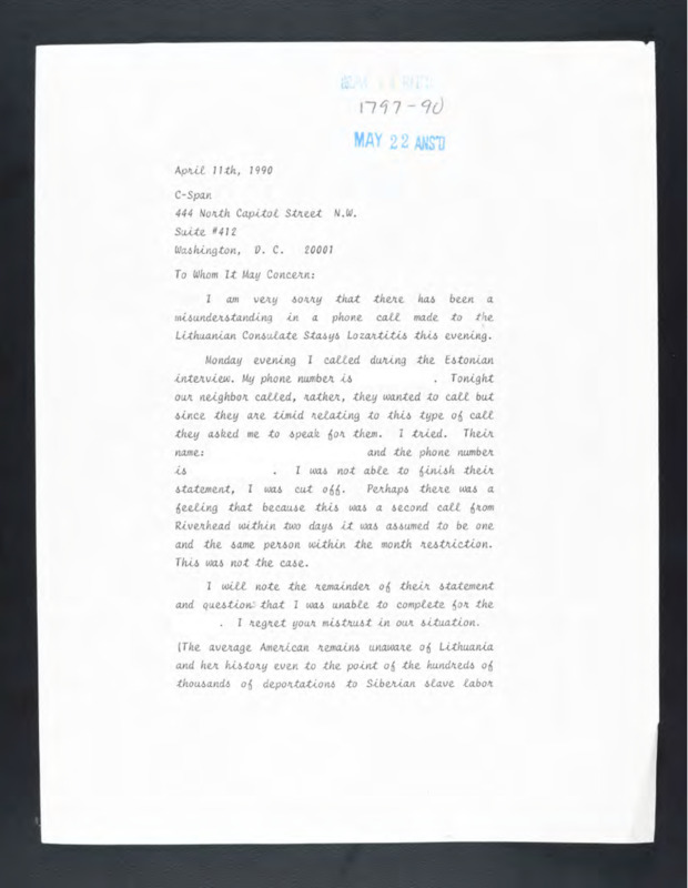 Expresses comments pertaining to a comment made to the Lithuanian Consulate Stasys Lozartitis.