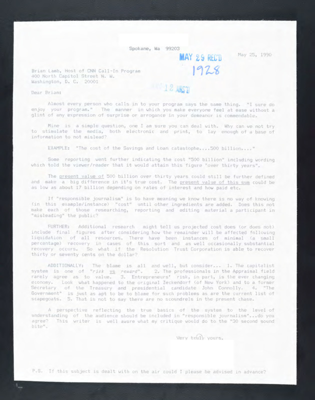 Letter to C-SPAN, n.d.; 99203