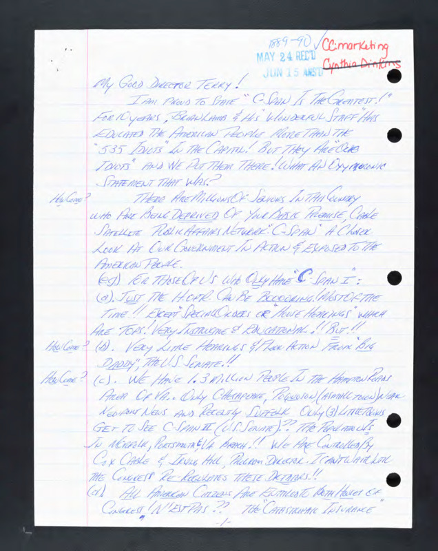 Praises C-SPAN and asks for further coverage of the U.S. Senate.