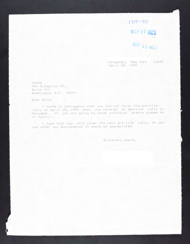 Expresses disappointment that C-SPAN did not cover the pro-life rally.