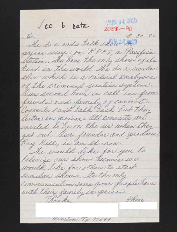 Describes a radio show they have on prison and criminal justice, and requests that C-SPAN televise their show.