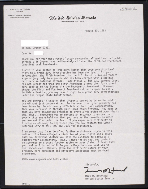States opinion that Senator Hatfield of Oregon is a liar and includes enclosures meant to support this opinion.