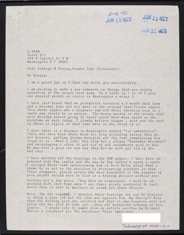 Letter to C-SPAN, n.d.; 44278