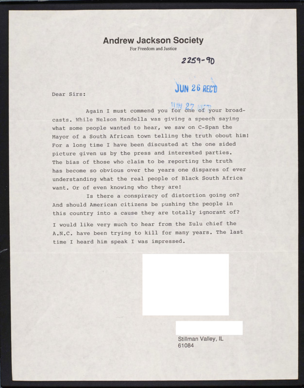 Compliments C-SPAN on broadcast of South African politics and criticizes Nelson Mandela.
