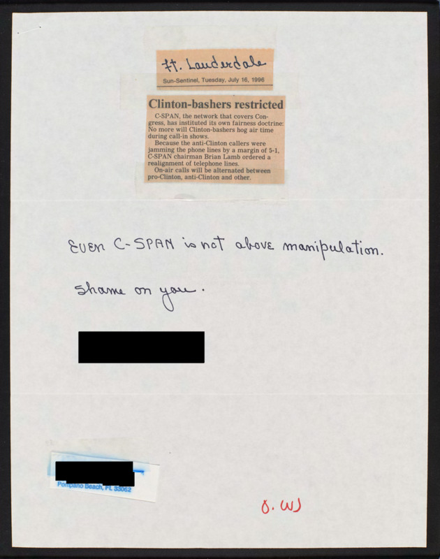 Letter to C-SPAN, 1996-07-16; 33062
